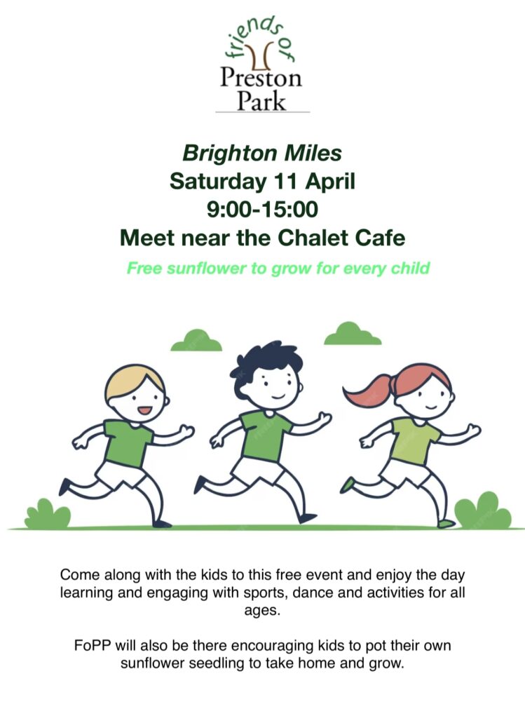 Our next event will be the Brighton Miles event on 11 April aimed at encouraging children to be more active. The event is free and inclusive.